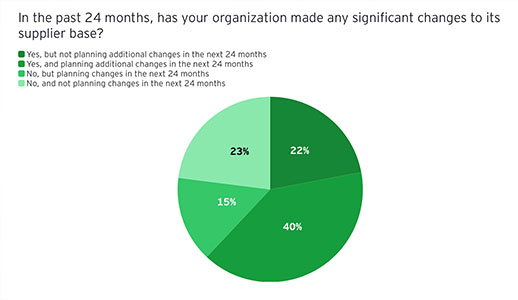 A survey by Ernst & Young indicates that a significant number of companies are experiencing changes in their supplier bases. According to respondents, 62% said their companies have implemented significant changes in the past 24 months, and 55% have plans for significant changes in the next 24 months.